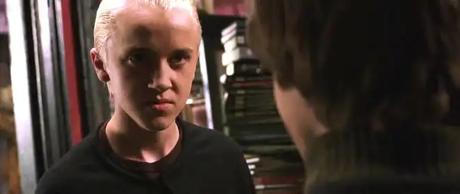 Драко Малфой в фильме продолжает роль антагониста среди сверстников, но его влияние на ход сюжета остаётся ограниченным. Он олицетворяет классическое детское высокомерие и страх перед потерей привилегий в условиях возникновения кризиса. Его поведение усиливает тему предрассудков и класса, показывая, как страх перед неизвестным легко превращается в агрессию и поиски виноватых.