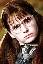 Мёртвая Плакса, Мёртвая девочка Моaning Myrtle, воплощена в образе актрисы Ширли Хендерсон. Её Каменная печаль и одновременно зубастая мрачность создают нужный готический фон для сцен в трубах и туалетах Хогвартса. Образ Мыртвой Мэртл, как и её исполнение, — сочетание трагикомичности и потусторонней тоски, что усиливает ощущение мистики в фильме.
